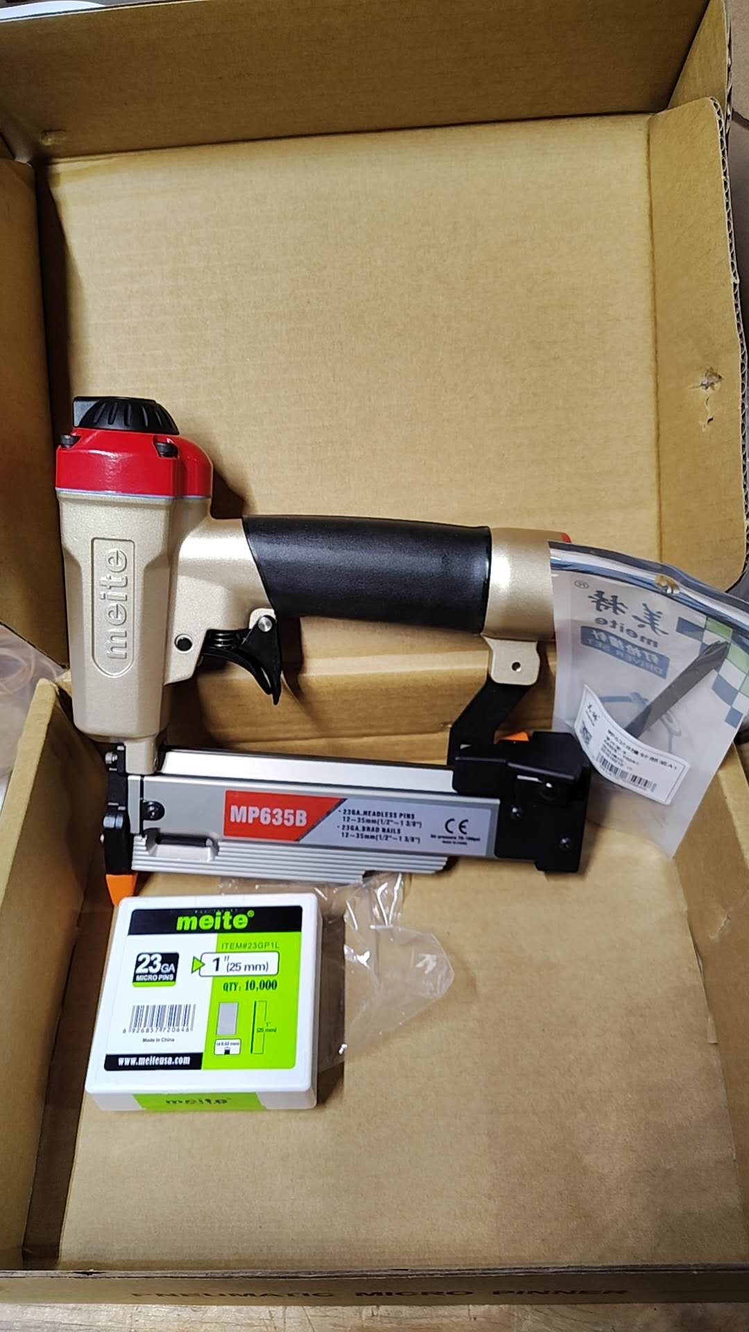 MP635B - With Safety Trigger 23 Gauge Pin Nails, Max 1-3/8"